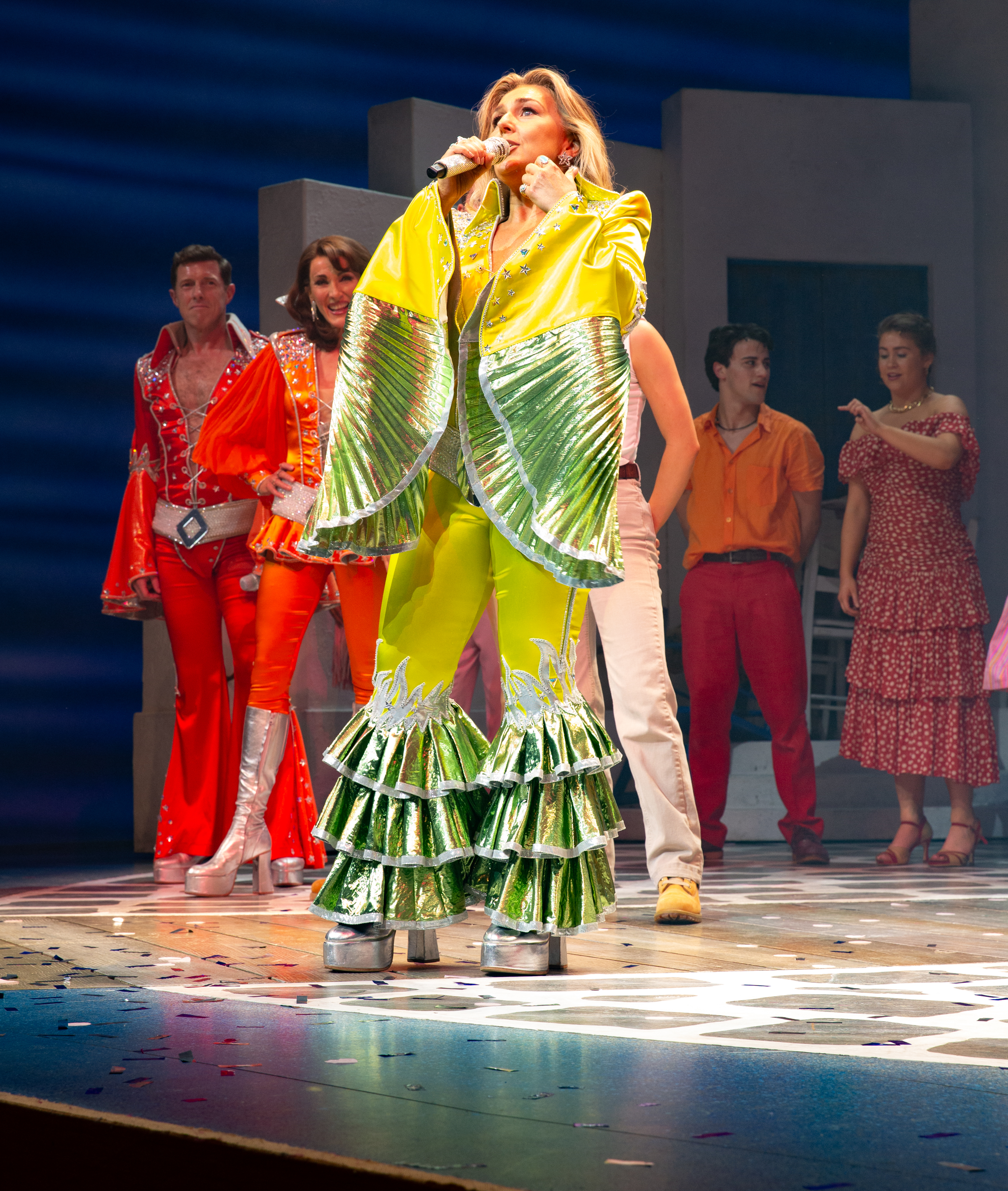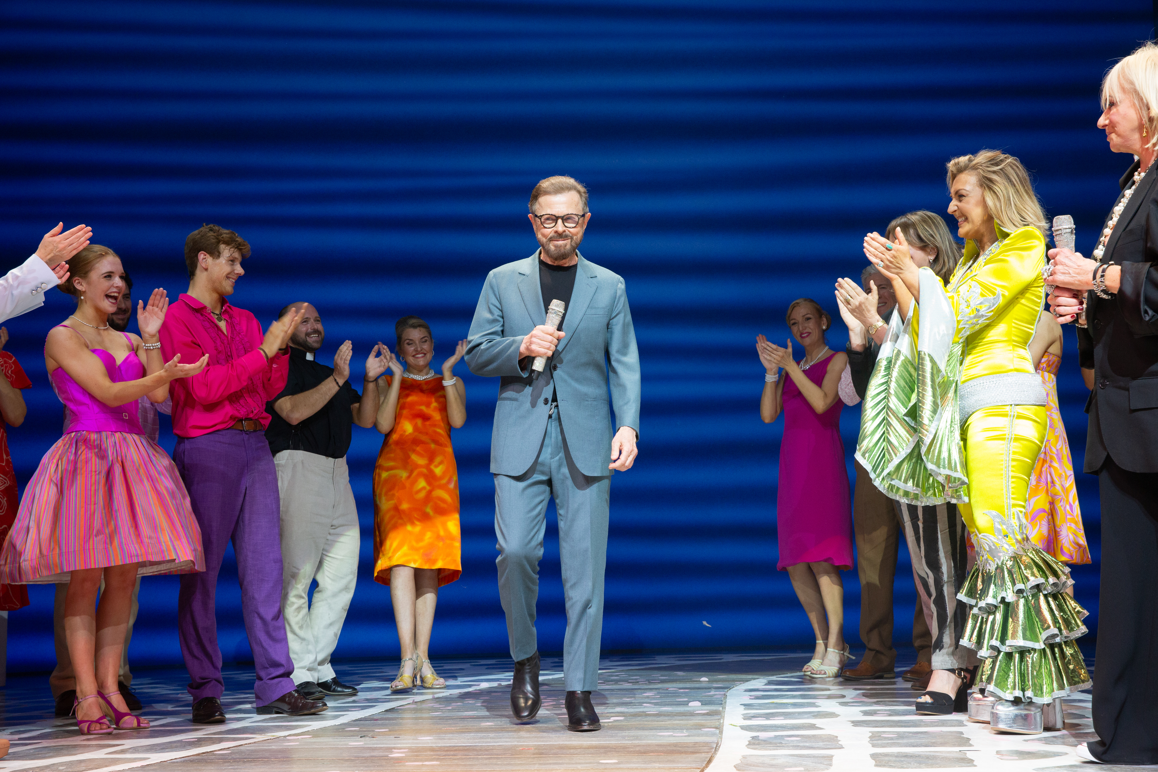 There was quite a celebration on Saturday night. On stage at the Novello Theatre, the cast were joined by Björn Ulvaeus from ABBA, Judy Craymer (creator and producer), Catherine Johnson (book writer), Anthony van Laast (choreographer), as well as original cast members Siobhan McCarthy (original Donna) and Lisa Stokke (original Sophie).